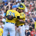 May 29, 2025; Houston, Texas, USA; Tampa Bay Rays first baseman Jonathan Aranda (62) celebrates third baseman Junior Caminero (13) run against the Houston Astros in the eighth inning at Daikin Park. Mandatory Credit: Thomas Shea-Imagn Images Junior Caminero notched a career-high six RBIs, highlighted by a three-run, opposite-field homer that capped a five-run seventh…