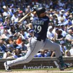 Colorado Rockies second baseman Kyle Farmer (6) throws a pass after tagging out Cincinnati Reds shortstop Elly De La Cruz (44) in the first inning of a MLB game between the Cincinnati Reds and Colorado Rockies, Friday, July 11, 2025, at Great American Ball Park in Downtown Cincinnati. The Colorado Rockies have a chance Saturday…