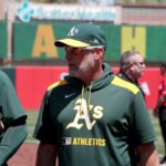 May 9, 2025; Denver, Colorado, USA; Colorado Rockies third base coach Warren Schaeffer (34) in the eighth inning against the San Diego Padres at Coors Field. Mandatory Credit: Isaiah J. Downing-Imagn Images The Colorado Rockies head to the Dallas-Fort Worth Metroplex to open a three-game interleague series with Texas Rangers on Monday without manager Bud…