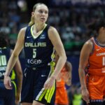 Jul 30, 2025; Toronto, ON, Canada; Ben Shelton (USA) hits a ball to Adrian Mannarino during the second round at Sobeys Stadium. Mandatory Credit: John E. Sokolowski-Imagn Images Fourth-seeded Ben Shelton and sixth-seeded Andrey Rublev got past potentially tricky matches to advance to the third round of the National Bank Open in Toronto on Wednesday….
