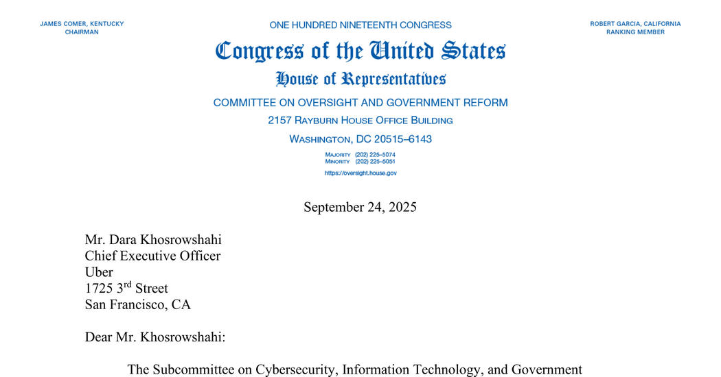 The Subcommittee on Cybersecurity, Information Technology, and Government Innovation is conducting oversight of corporate practices and the roles of federal agencies that may impact consumer safety. Recent reporting has highlighted that Uber receives a “report of sexual assault or sexual misconduct in the United States almost every eight minutes.”1 Specifically, news coverage states that “from 2017 to 2022, a total of 400,181 Uber trips resulted in reports of sexual assault and sexual misconduct in the United States,” a number significantly higher than the 12,552 cases previously disclosed by Uber.²