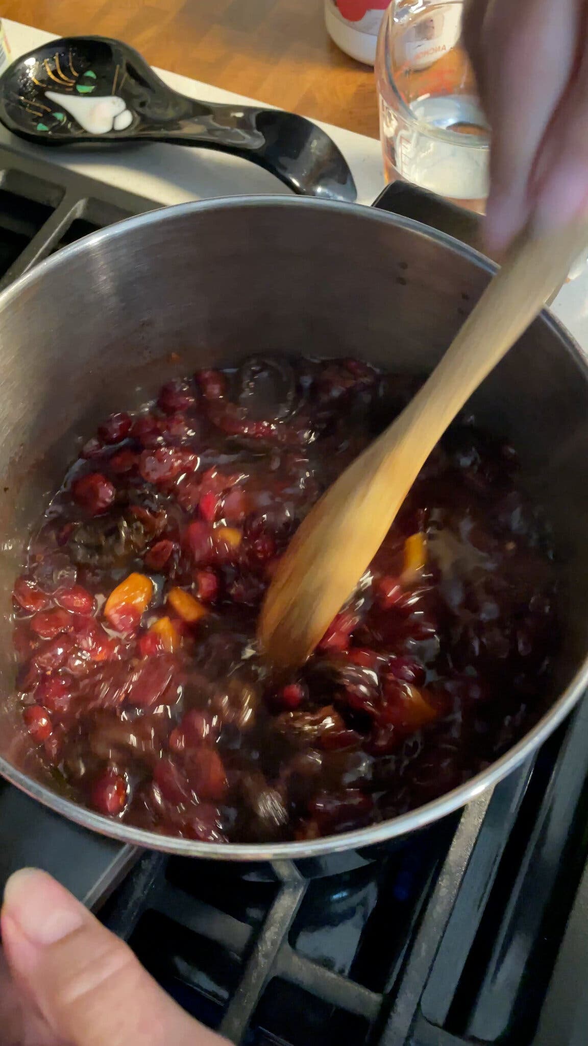 A flour mixture stirred into the simmering fruit thickens pluma moos.Credit…Arin Yoon for The New York Times